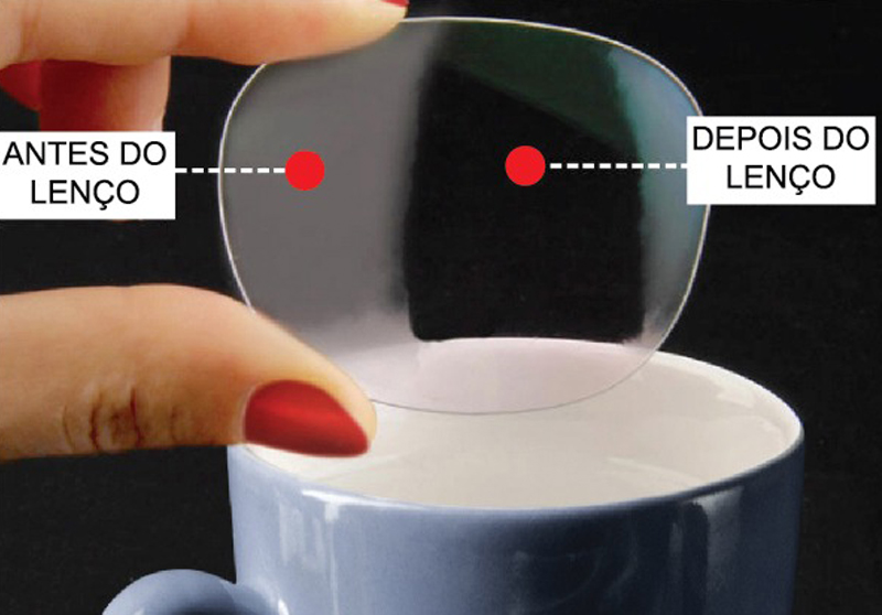 3. Limpe as lentes com o lenco(anti embaçante) durante 10 segundos